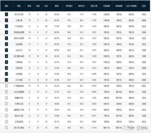 CBA积分榜:上海队积分追平广厦,青岛回升第四+北京排名第七