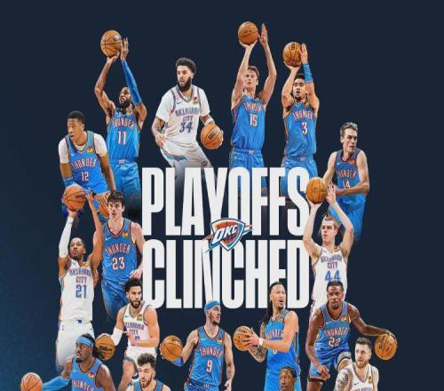 3月18日随着雷霆力克魔术,球队战绩升至54胜15负,在常规赛还剩13场前提下正式成为本赛季第一支锁定季后赛名额