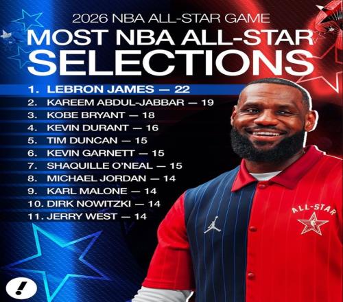 勒布朗连续22次全明星也继续刷新NBA历史第一纪录,排在第二的是贾巴尔19次,那么输掉这场比赛的勒布朗22连全明星就是安慰奖?