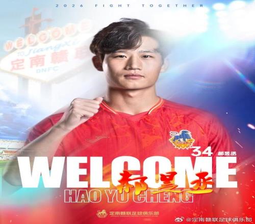 本赛季,郝昱丞将租借加盟定南赣联。他将身穿34号球衣代表定南赣联参加中甲联赛,欢迎郝昱丞加入定南赣联足球俱乐部。