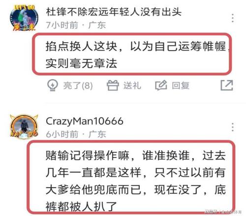 “掐点换人这块,以为自己运筹帷幄,实则毫无章法”;“谁准换谁,过去几年一直都是这样,只不过以前有大爹给他兜底而已,现在没了,底裤都被人扒了”……