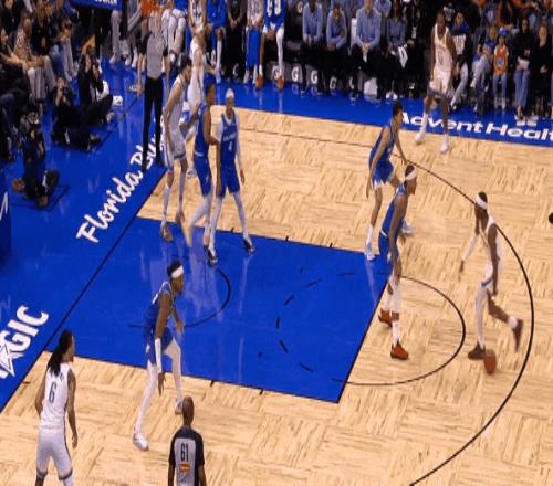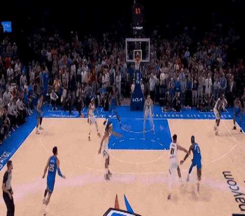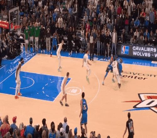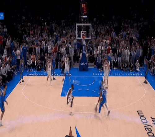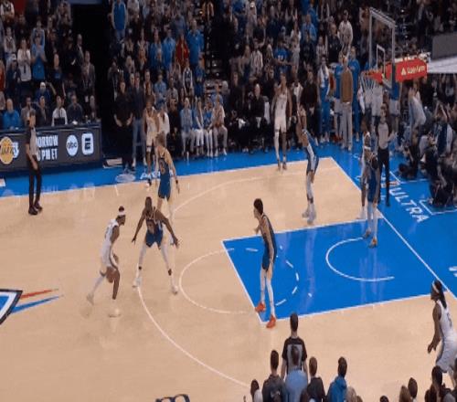 今天雷霆对魔术最后一节99比96胶着时,亚历山大一个单挑撤步三分,击倒班凯罗。