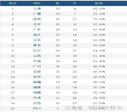 附:CBA积分榜最新排名
