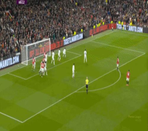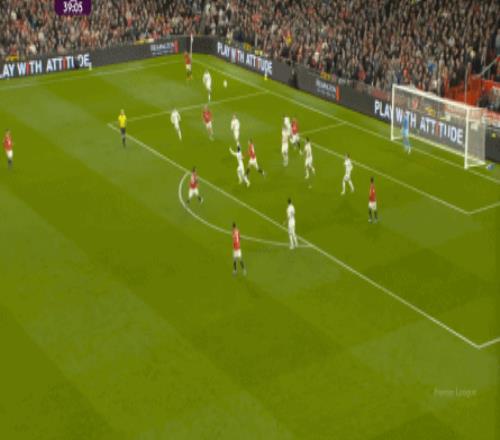 就在后续的进攻里,利兹联打开宽度,由翼卫从左边送上传中,这个时候的曼联就已经需要拉门斯救命了: