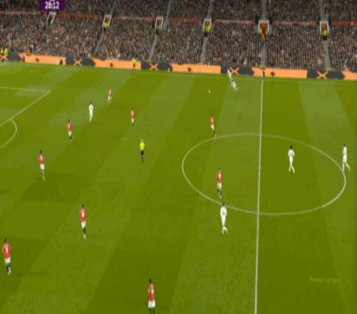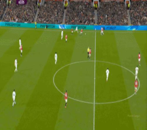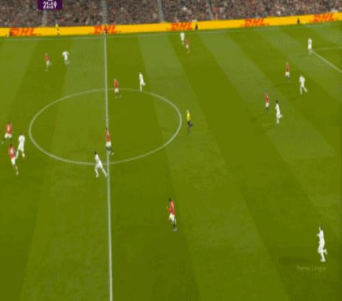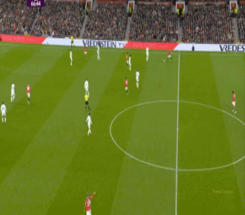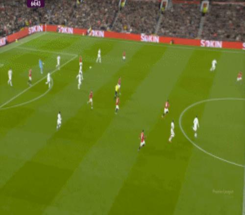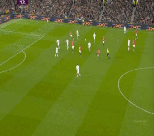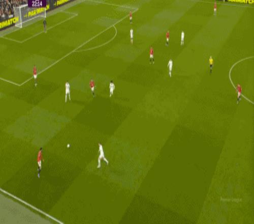 点燃了主场的气氛之后,曼联的表现有了一些提振,从而打出了一段连续的转换进攻: