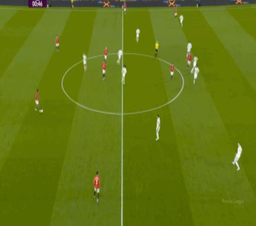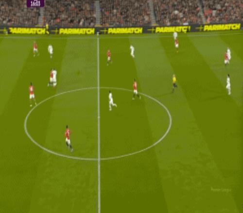 过去的20多天,曼联可能借此机会给谢什科上了一点特训,所以在开局阶段的这次传跑配合当中,你能看出一点训练套路的痕迹: