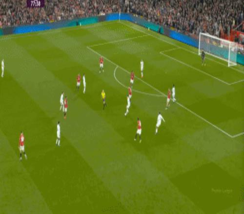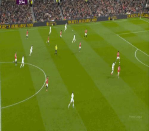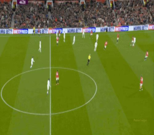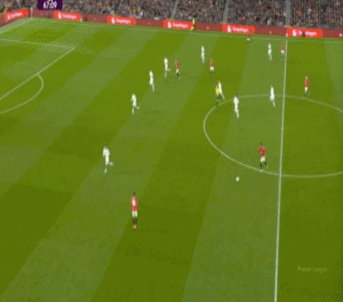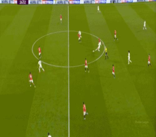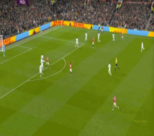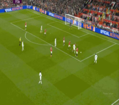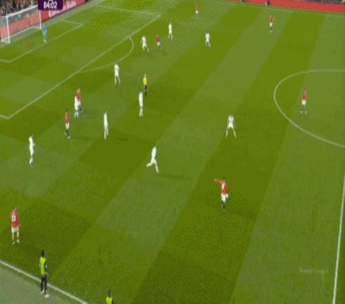 防守阶段,曼联先失去层次,后失去宽度,让利兹联还是完成了起脚,靠卢克-肖的解围才清除掉风险,然后才是曼联的反击。