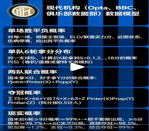 最终,从上而下层层计算,得出的结论是,国际米兰夺冠几率高于99.99%。麻了,赢麻了。