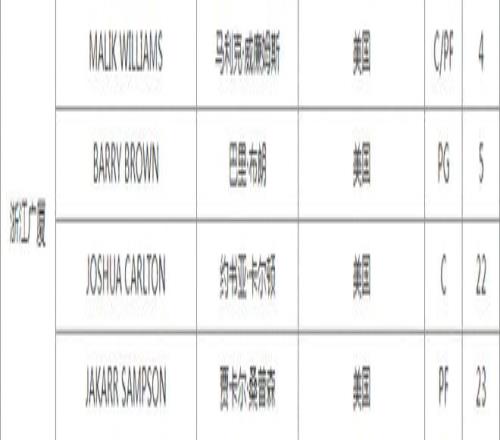 广厦在注册马利克-威廉姆斯后,取消了本赛季表现出色的塔克注册。根据报道显示,塔克是因为生病短暂被取代。