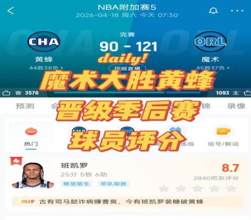 东部这边的对决其实没太多悬念,魔术坐镇主场,直接以121比90大胜黄蜂,全场碾压没给对手留任何反扑的机会。首发五个人全部得分上双,核心班切罗更是砍下25分5篮板6助攻,轻轻松松把东部最后一个晋级名额收入囊中,接下来首轮就对阵底特律活塞。加上之前提前拿到名额的76人,东部两个晋级队就此全部确定。
