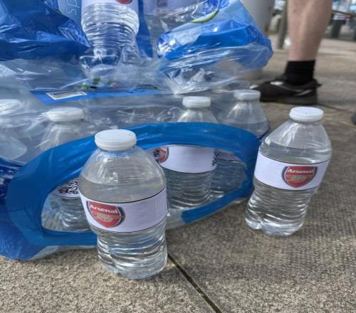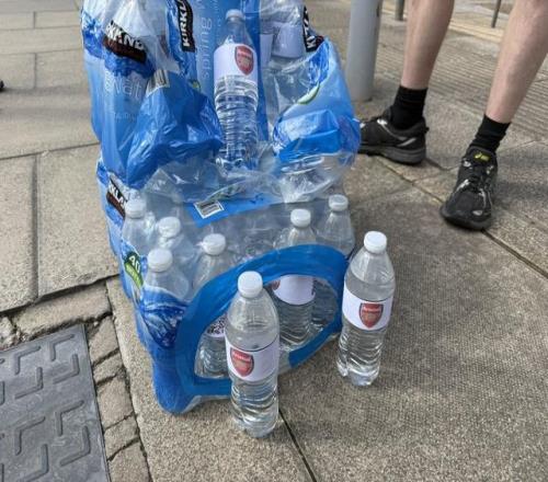 记者Alex Howell发布照片称,在曼城主场对阵阿森纳赛前,有曼城球迷在阿提哈德球场外出售贴有阿森纳队徽的瓶装水。