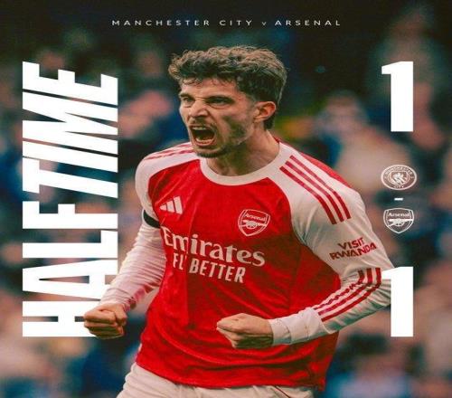 第20分钟,曼城球员哈兰德突破横传,塞门约单刀机会意外滑倒!第36分钟,莫斯克拉故意拉拽对手吃到黄牌!第44分钟,B-席角球直接攻门,被萨利巴门线解围!半场结束,曼城1-1阿森纳。