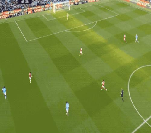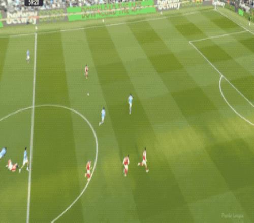 第64分,曼城打出快速进攻,奥赖利传球,罗德里一脚踢空,哈兰德抢在加布里埃尔之前,将球打进。