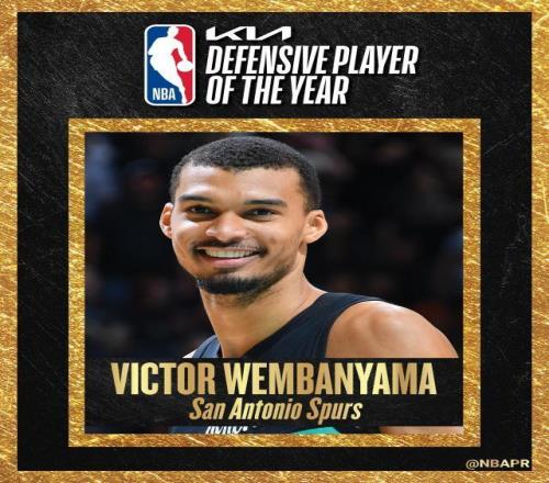 4月21日,NBA官方公布年度最佳防守球员奖(DPOY)得主,马刺球星文班亚马当选,荣膺奥拉朱旺奖。