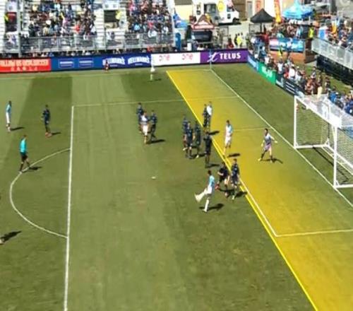 比赛第20分钟破门,太平洋FC获得角球机会,亚历杭德罗-迪亚兹将球攻入门中。按以往规则这球明显越位了,但在新规所说的「无明显空隙即不算越位」的判定下,主裁判认定进球有效!