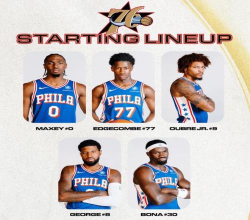 首发阵容方面,凯尔特人队这边,全员健康,主帅排出的首发五人组为:德里克-怀特、杰伦-布朗、杰森-塔图姆、萨姆-豪瑟和内米亚斯-克塔;76人队这边,恩比德因阑尾炎手术继续缺席,这已经是他连续缺席的第6场比赛,首发阵容则为:泰雷斯-马克西、VJ-埃奇库姆、凯利-乌布雷、保罗-乔治和阿德姆-博纳。
