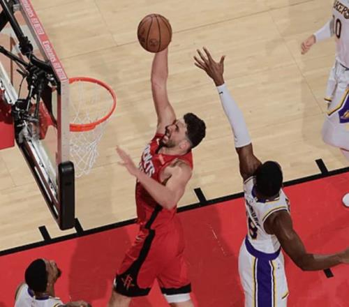 值得一提的是,湖人上半场出现多达13次失误(其中詹姆斯3次、斯马特4次、肯纳德2次),反观火箭全队仅4次失误。此外,火箭上半场三分15中5、命中率33.3%,依旧不准;但却将湖人三分限制到6中1、命中率骤降至16.7%(前三场三分46.1%联盟第一)。