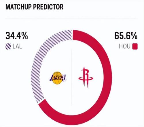 赛前,美媒ESPN对本场比赛进行了胜率预测,湖人胜率意外降至34.4% ,火箭队胜率则提升至65.6% ,又是一场 ‘硬仗’ 。